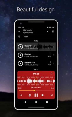 捕捉声音只是开始,AudioRecorder更致力于提供全面的后期管理功能,让您的录音旅程无忧无虑。您可以轻松回放所有记录,甚至在后台也能持续录制或播放。直观的波形图显示让声音可视化,助您快速定位关键时刻。便捷的重命名、分享功能让整理与传播变得轻而易举。您还可以导入外部音频文件,将重要记录添加到书签,构建个性化的声音库。更添乐趣的是,多款精美主题可供选择,让AudioRecorder的界面与您的心情和风格完美契合,带来更愉悦的使用感受。