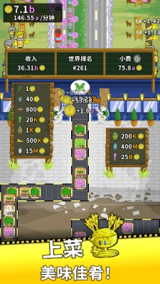 《韭菜工厂大亨》提供双重乐趣体验:您既可以选择沉浸于观察工厂繁忙运作的宁静之中,看着源源不断的闲置收入和顾客满意的小费滚滚而来;也可以全身心投入到精密的微调与自动化策略中,将您的生产王国打磨至极致。在这里,您不仅是建造者,更是运筹帷幄的商业巨擘。借助游戏内集成的实时在线排行榜,您可以与全球的玩家一较高下,证明您的商业洞察力无与伦比。见证您的传送带和加工设施全速运转,将您的帝国收益推向榜单巅峰,让所有人相信您的策略是打造世界顶级餐饮帝国的密钥!