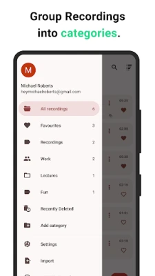 体验极致便捷的录音过程,"录音机 - 录音机 录音机 - Voice Recorder" 让您轻松配置各项录音参数。通过调整采样率、启用立体声模式、智能消除静音及噪音,甚至利用增益控制和回声消除器,捕捉纯净无暇的声音。它完美兼容安卓穿戴设备,并支持外接蓝牙麦克风,拓展您的录音自由度。完成录制后,强大的分组功能让您可以为每段音频添加标签、书签、颜色和图标,将所有语音记录整理得井井有条,轻松管理您的声音世界。
